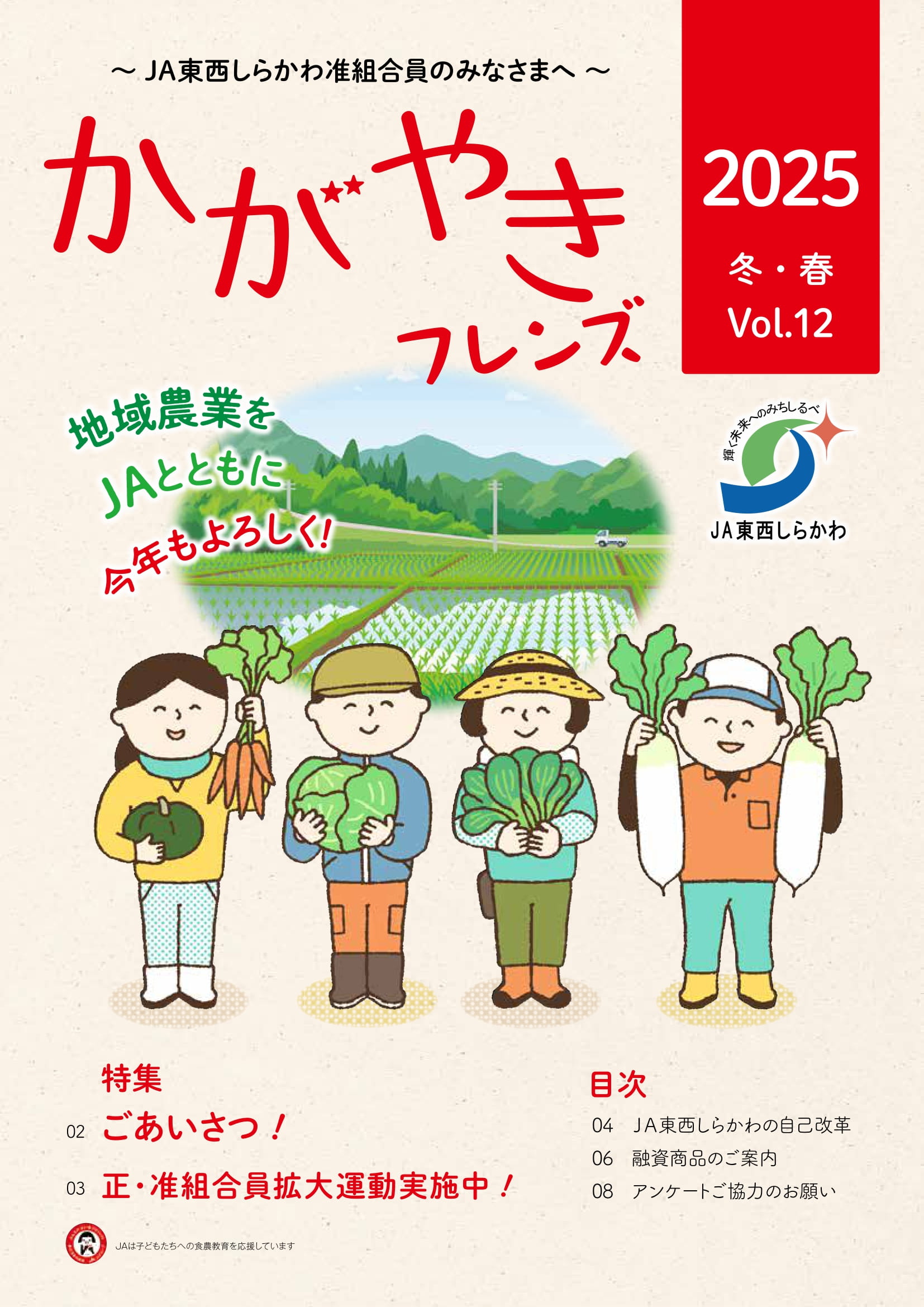 ●2026年1月15日 ●2026年1月15日 ●2025年12月号No.298 ●2025年11月号NO.297 ●2025年10月号NO.296 ●2025年9月号NO.295 ●2025年8月号No.294 ●2025年夏・秋 ●2025年7月号No.293 ●2025年6月号No.292 投稿のナビゲーション 1ページへ 2ページへ … 10ページへ 次のページ カテゴリ コミュニティ誌「みりょく満点」 准組合員広報誌「かがやきフレンズ」 正組合員広報誌「かがやき」